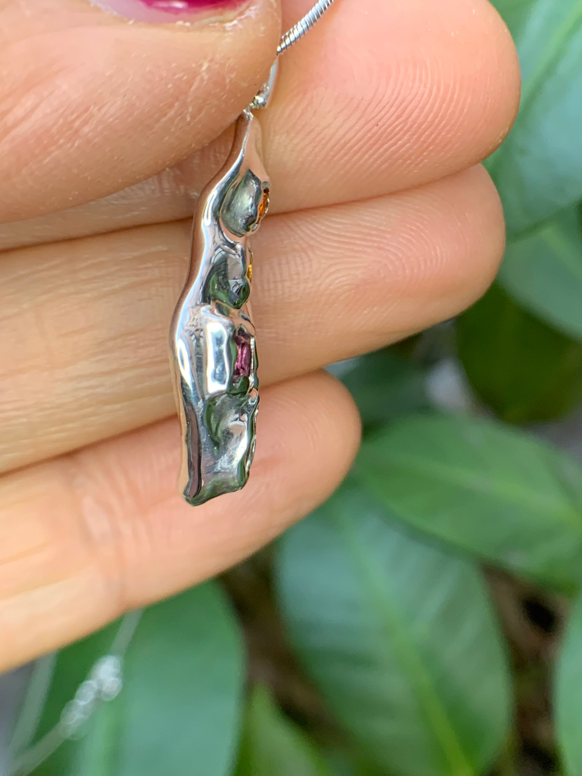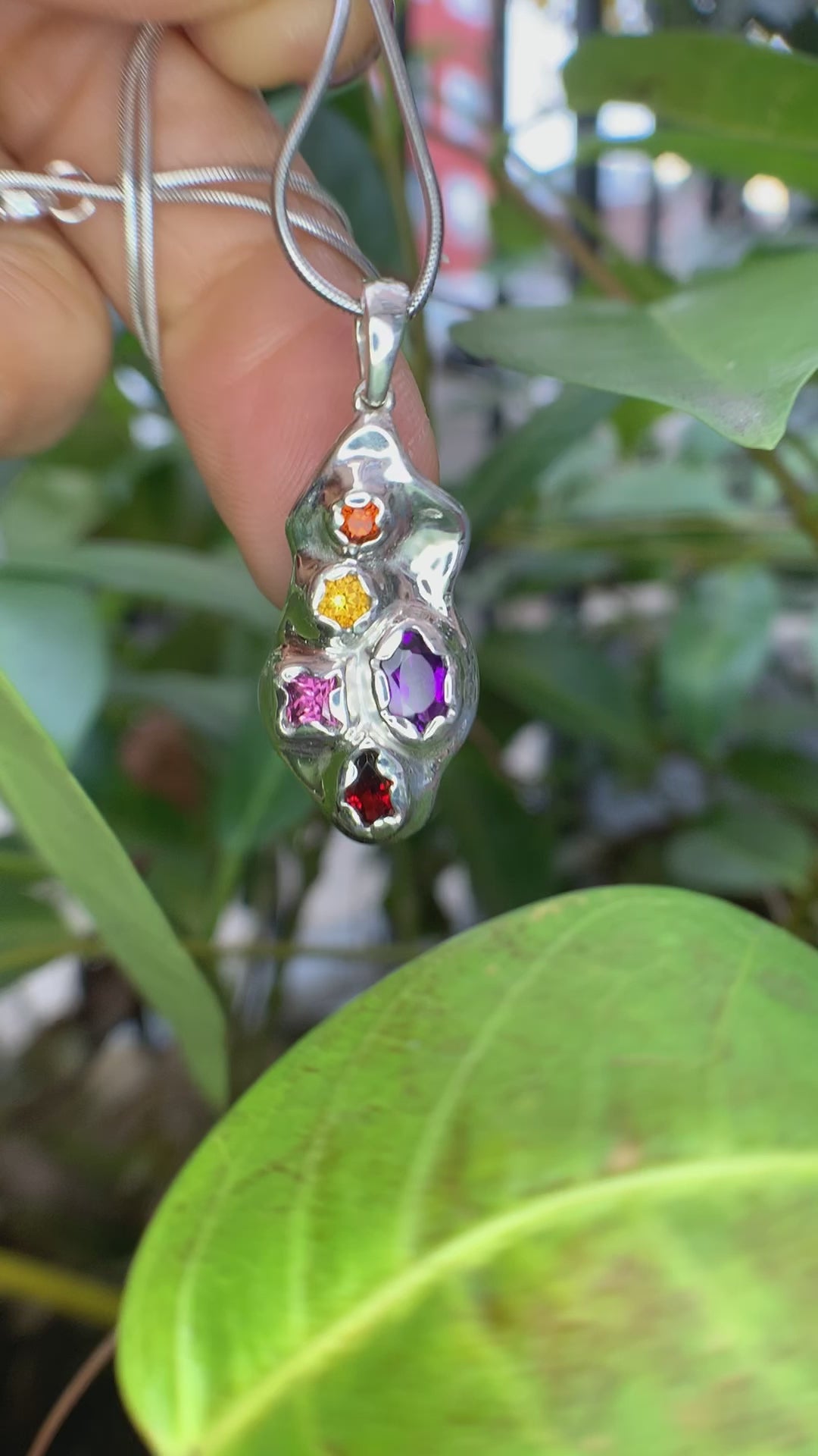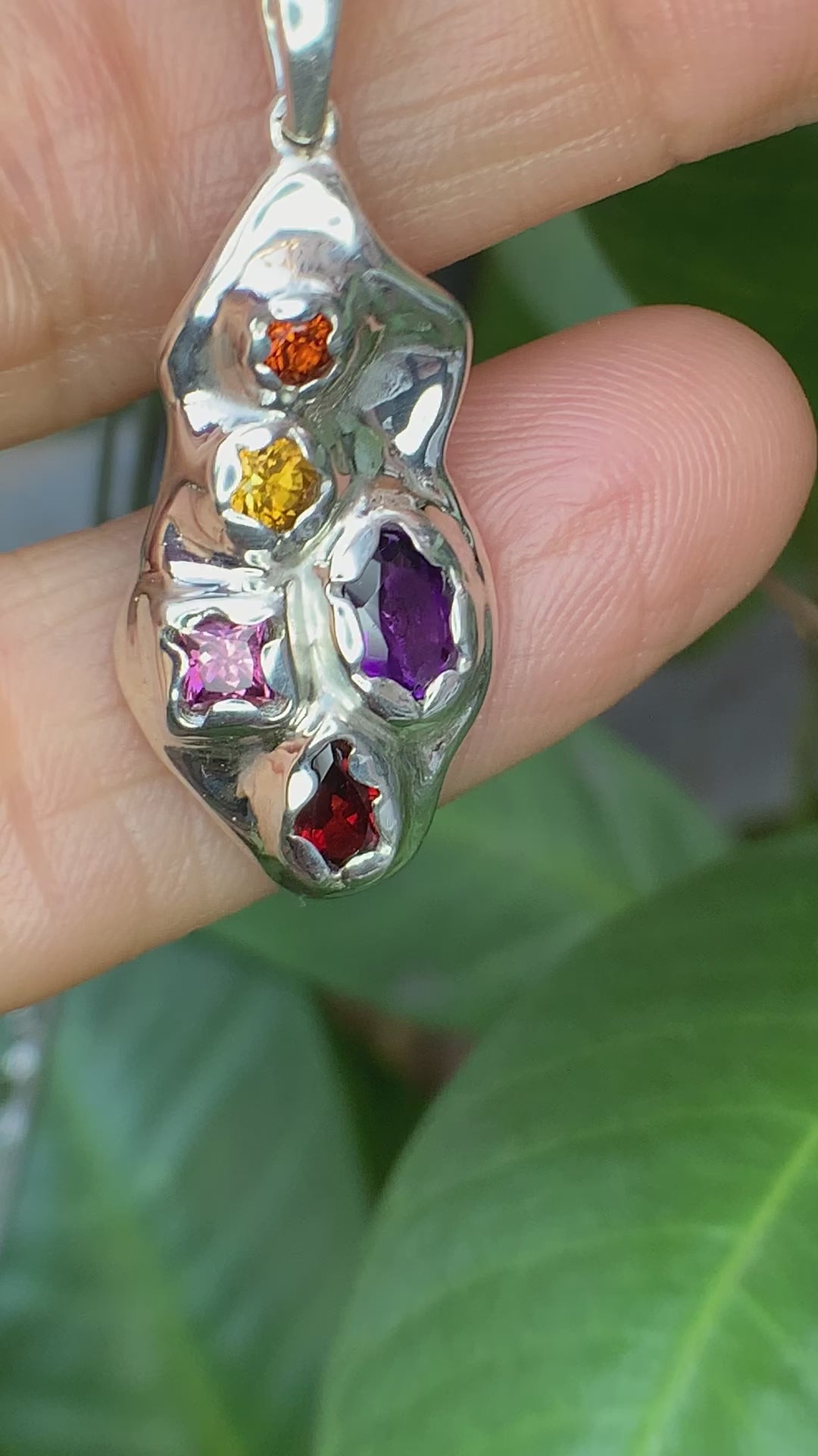 - 5 natural gemstones - amethyst, orange and yellow citrine, red garnet, pink rhodolite