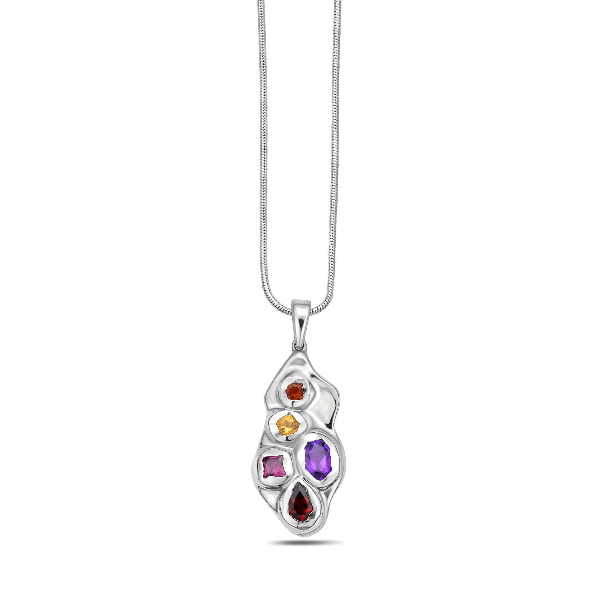 This freeform shape evokes a sense of movement and flow, much like the ripples in water, symbolizing the ripple effect of life’s experiences. The dreamy gemstones appear as if they are floating weightlessly in a sea of silver, captivating your attention with their mesmerizing beauty.
