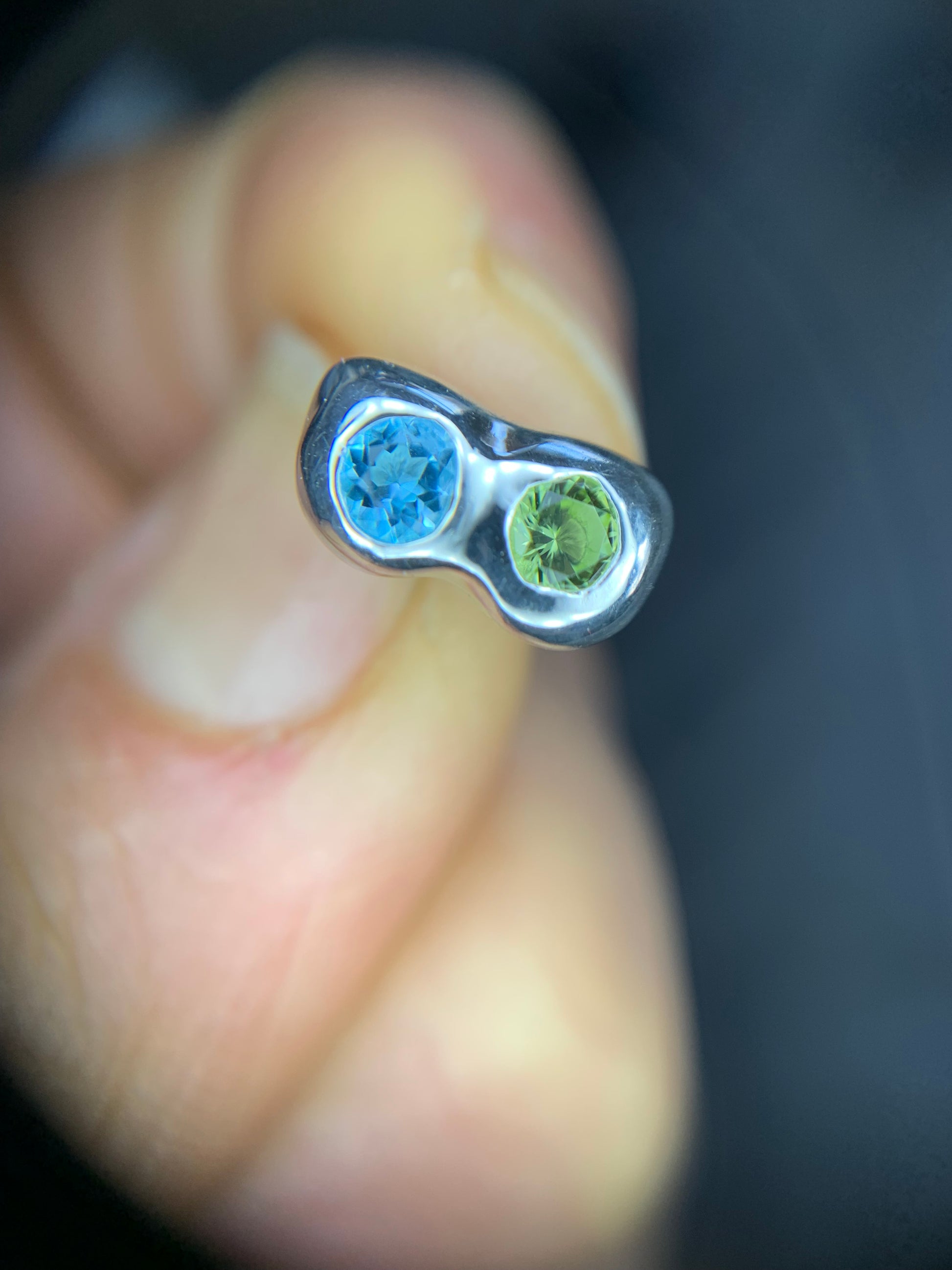 - 2 natural gemstones - Swiss blue topaz and peridot