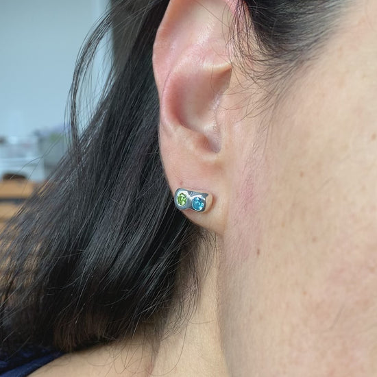 Soulmate Earrings - Swiss Blue Topaz and Peridot